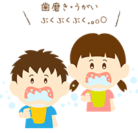 永久歯の虫歯予防として、一定濃度のフッ化ナトリウム溶液を用いて1分間ブクブクうがいをする方法です。